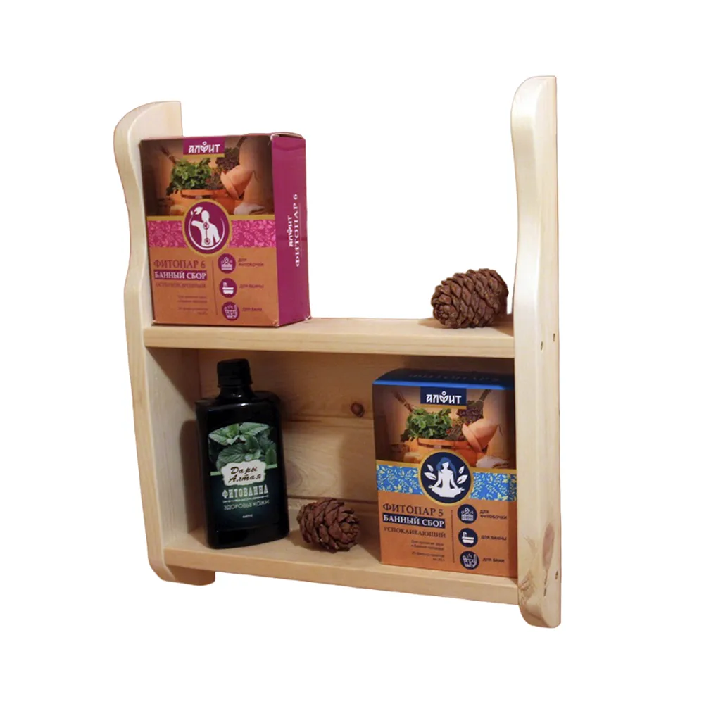 • Полка узкая из кедра Полка из кедра станет оригинальным дополнением и украшением в бане или на даче и даже в ванной и на кухне. А тех, кто любит эко-стиль, наши полки удивят по-настоящему своей продуманностью и функциональностью! В бане: данный вариант полки подойдет для размещения коробок с фитосборами, бутылей с шампунем и других нужных банных предметов. На кухне:компактно разместятся здесь небольшие баночки для специй, сыпучих, круп.