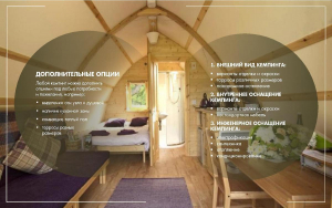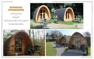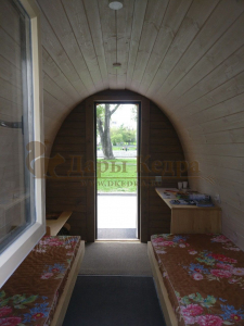 Такой кемпинг дом удобное и практичное решение для дачного использования или обустройства загородных баз отдыха. Увеличенные размеры и боковой вход со стеклянной дверью позволяют зонировать внутреннее пространство помещения. Домик включает в себя: