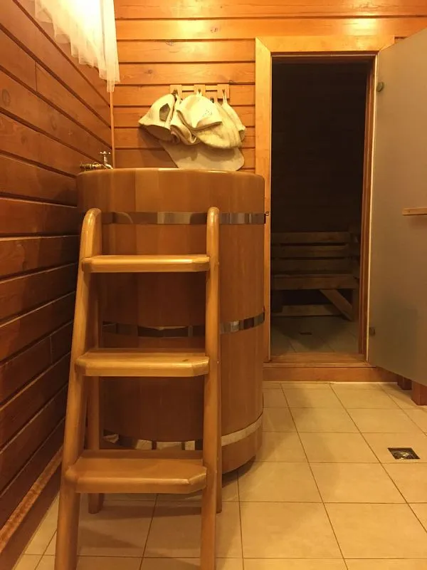 Финская сауна, купель и душевая кабина из кедра в центре здоровья и красоты «Релакс» (г. Новосибирск)