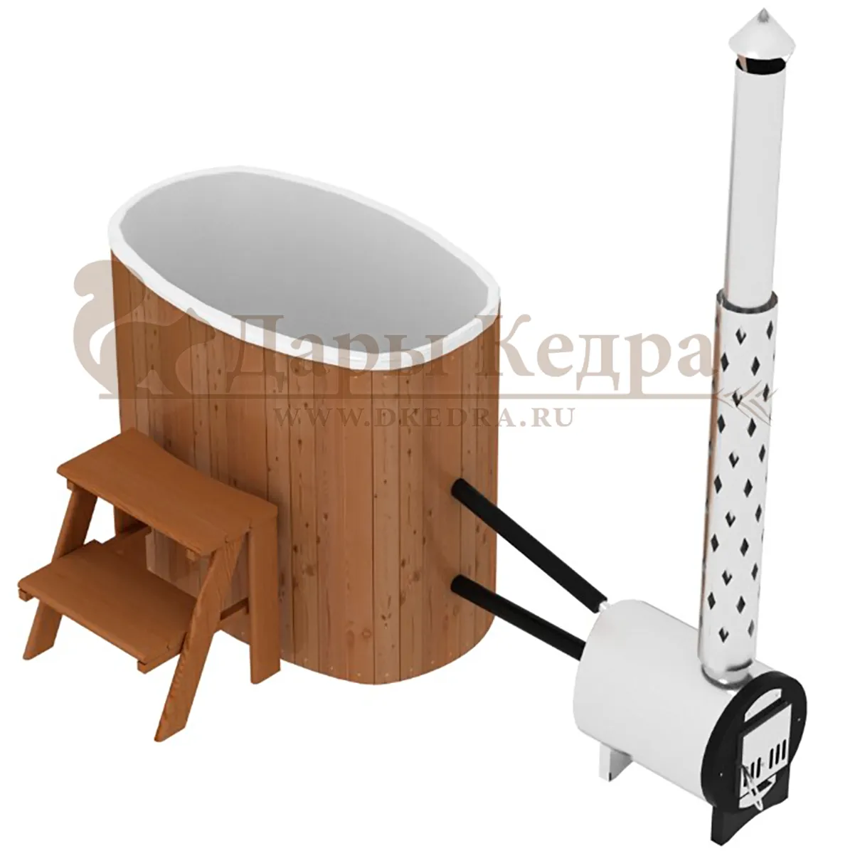 Финская овальная композитная купель с подогревом (с печкой) «НОТА 79 с печью 25 квт» Это уличная подогреваемая купель с овальной внутренней чашей, которая изготовлена из современного прочного и термоустойчивого материала (композита). Форма чаши обеспечивает комфортную посадку во время принятия процедур. Для удобства пользования купель оборудована приставной лестницей. Подогрев воды осуществляется внешней печью с дымоходом. Композитная вставка придает купели красивый внешний вид, продлевает срок службы и облегчает уход за изделием. Парение на свежем воздухе – это отличный способ укрепить здоровье и поддержать организм в тонусе.